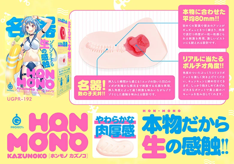 HON-MONO ban đầu là một loại onahole thư giãn, nhưng KAZUNOKO này mang lại ấn tượng rằng nó nhẹ nhàng, mềm mại nhưng vẫn kích thích được bạn. Khi lối đi vào mềm mại và êm ái, sự kích thích ngay cổ tử cung trở nên nổi bật hơn và cao trào hơn. Nên xét về tổng thể thi đây là mẫu onahole cho cảm giác ấn tượng.