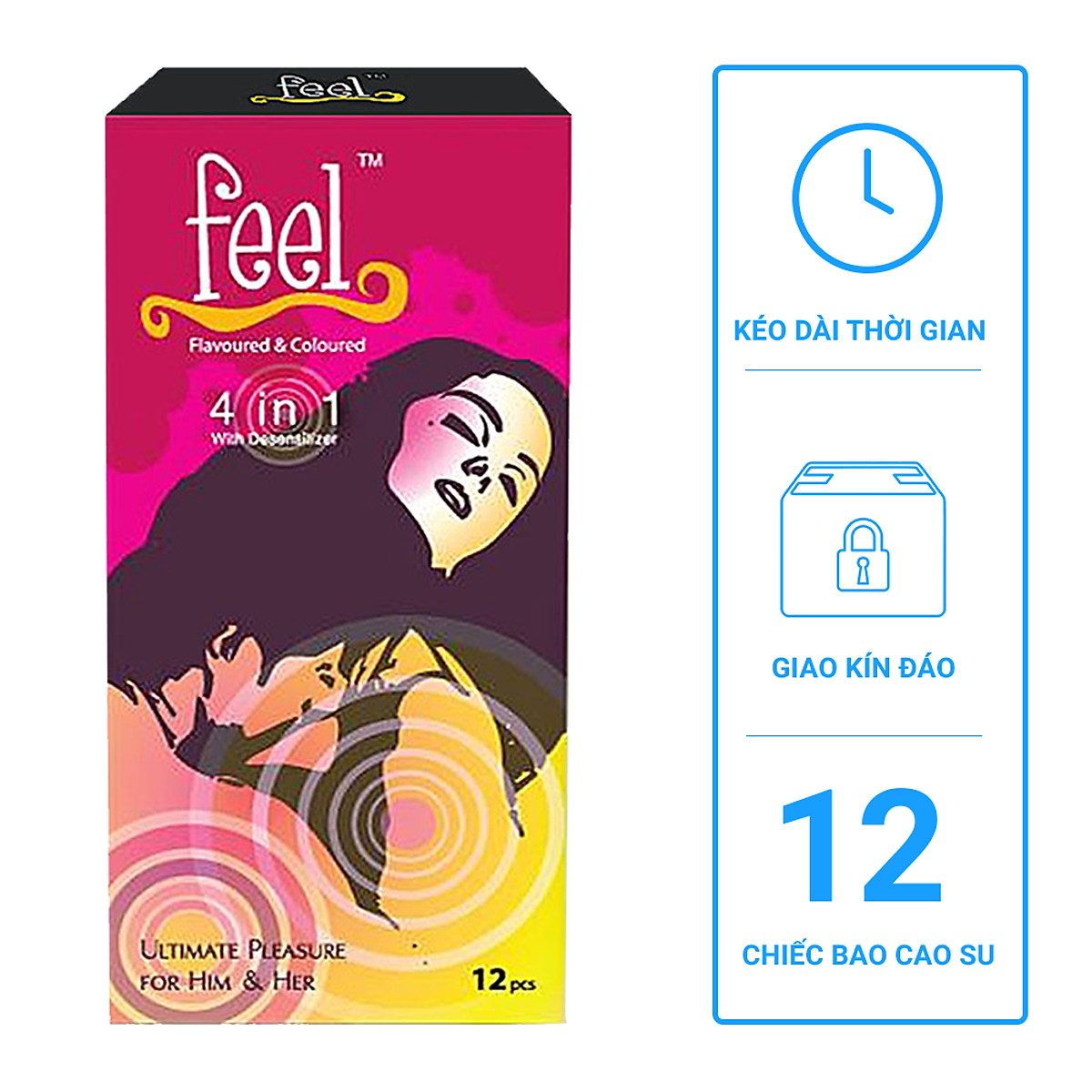 Feel 4 in 1 được đánh giá là loại bao cao su siêu gân gai, với số lượng gân gai khá dày tập trung ở thân bao vào một lằn thắt ôm khít cậu nhỏ. Đồng thời, sản phẩm được bổ sung Benzocain giúp kéo dài thời gian quan hệ.