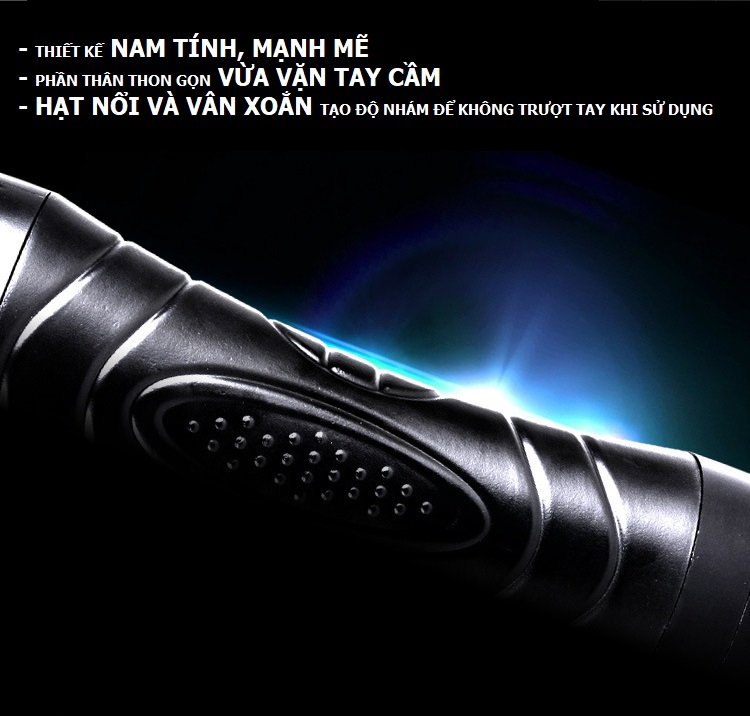 Sản phẩm điều chỉnh được độ rung bằng nút xoay đơn giản dưới đáy. Bên ngoài sản phẩm được ngụy trang như chiếc đèn pin màu đen, dễ dàng mang đi tới bất kỳ đâu.