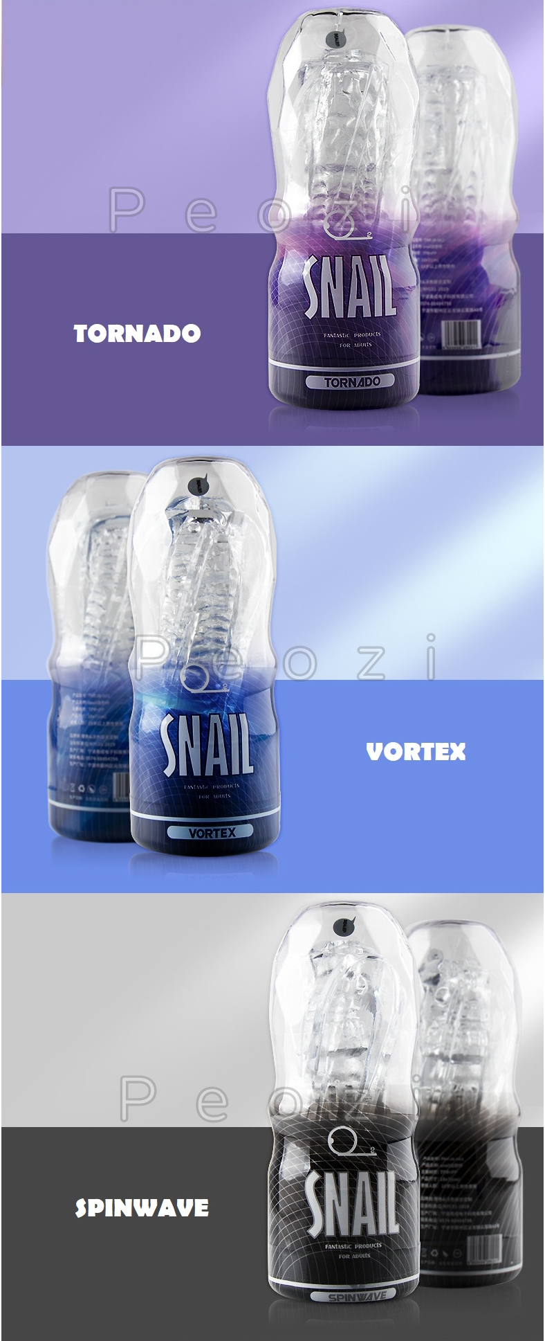 3 dòng sản phẩm của Snail có mục tiêu thiết kế rõ ràng với độ mềm - cứng, lỏng - chặt khác nhau nhằm tạo nên những cảm xúc khác nhau cho người sử dụng. Bạn có thể dùng cả 3 mẫu của Snail mà vẫn không cảm thấy nhàm chán.