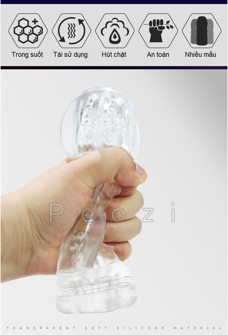 Silicone trong suốt, mềm mại và dày dặn Vân nổi 3D bên trong lõi 3 mẫu với 3 thiết kế tạo cảm giác kích thích khác nhau Vỏ nhựa dày cứng cáp |