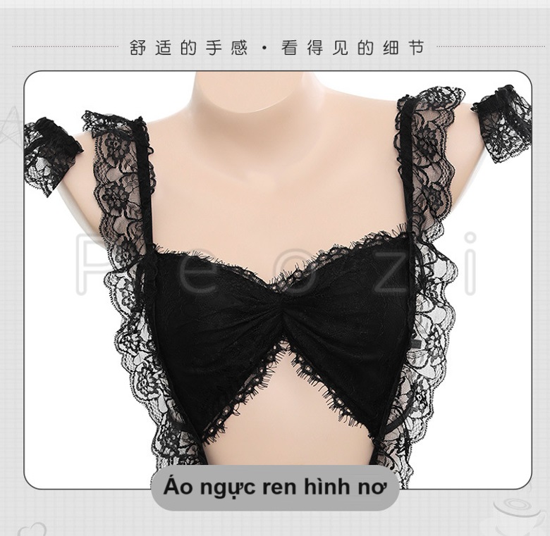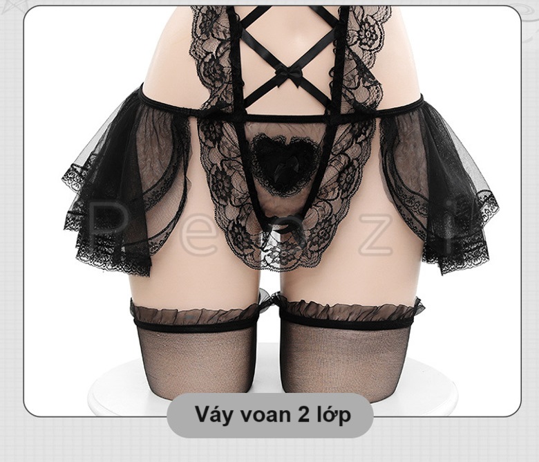 Hóa thân trong bộ đồ lót cách điệu quyến rũ với ren và voan. Bộ sản phẩm đi kèm vòng ren đeo tay và cài tóc nếu bạn muốn trở thành 1 cô hầu gái sexy.