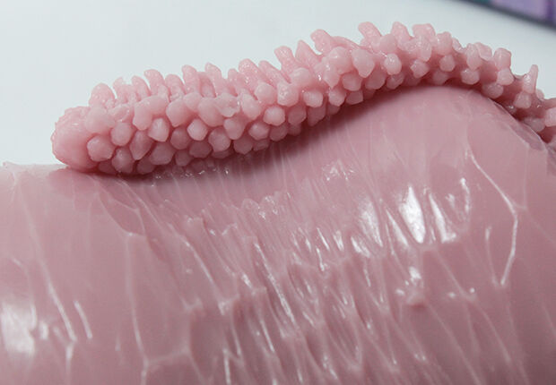 Thậm chí, phần rìa giữa các lớp gân có viền nổi nhẹ, tạo ra “cú cạ có cạnh” – cảm giác cực kỳ chân thật, giống như khi bị cạ vào viền môi thật.