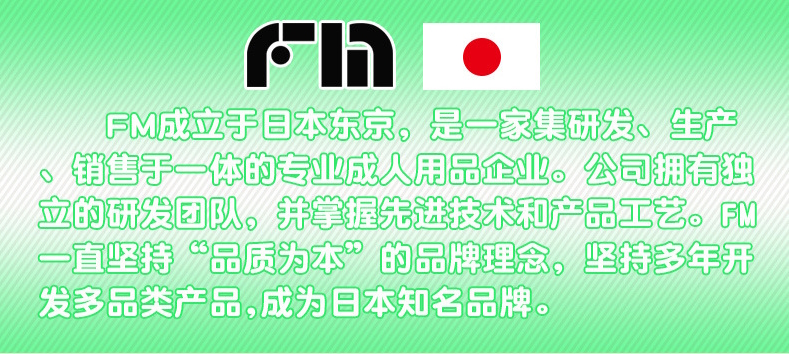 Hãng FM được thành lập tại Tokyo Nhật Bản, là công ty chuyên sản xuất cá sản phẩm dành cho người lớn. Công ty tích hợp tất cả các khâu R&D, sản xuất và bán hàng. FM có đội ngũ R&D độc lập và làm chủ được công nghệ riêng, tiên tiến. Công ty luôn tuân thủ triết lý thương hiệu " chất lượng là trên hết", kiên trì phát triển các sản phẩm đa chủng loại trong nhiều năm và đã trở thành một thương hiệu nổi tiếng tại Nhật Bản.