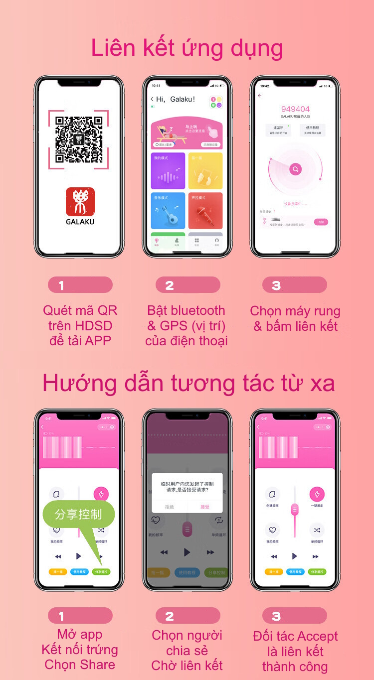 Điều khiển bằng APP: Chiếc máy rung là có thể được điều khiển dễ dàng qua App của riêng Galaku - bạn dễ dàng tải xuống được từ App Store hay Google Play. Nó cho phép đối tác của bạn điều khiển trứng rung theo 6 cách khác nhau. Dù 2 bạn có cách nhau nửa vòng trái đất, Little Pea vẫn kết nối tốt.