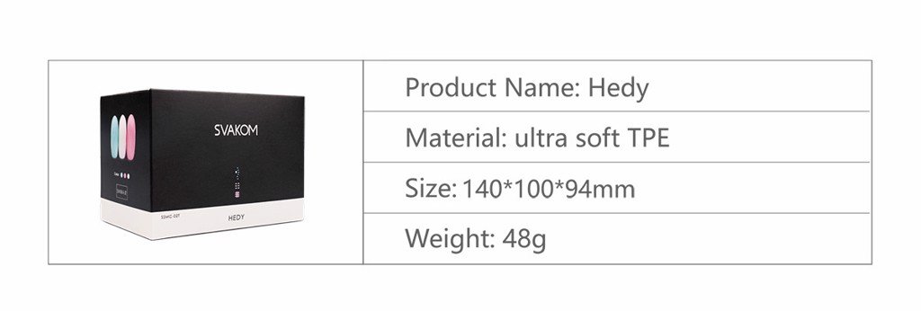 Trứng thủ dâm Hedy là sản phẩm của hãng sản xuất Sextoy dành cho người lớn nổi tiếng Svakom với hình dạng nhỏ gọn độc đáo. Sản phẩm được thiết kế với lớp vỏ bên ngoài giống quả trứng, bên trong là ruột TPE mềm mại có độ lành tính cao với làn da người.